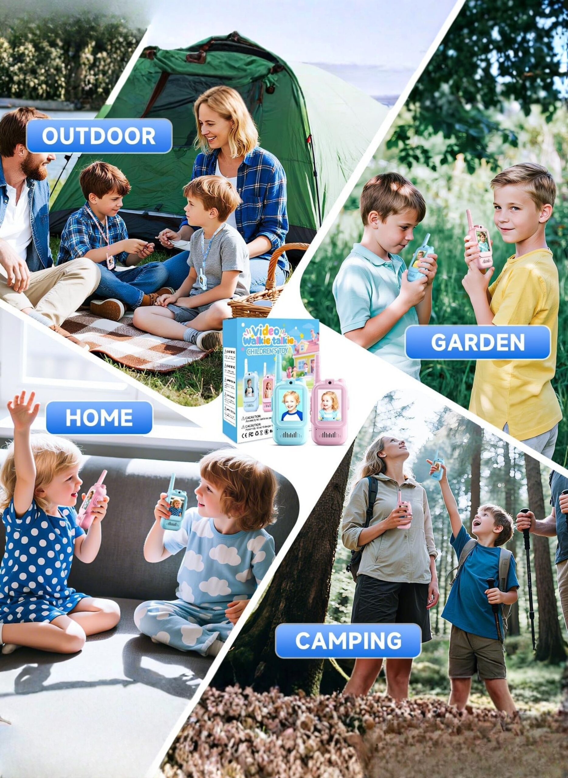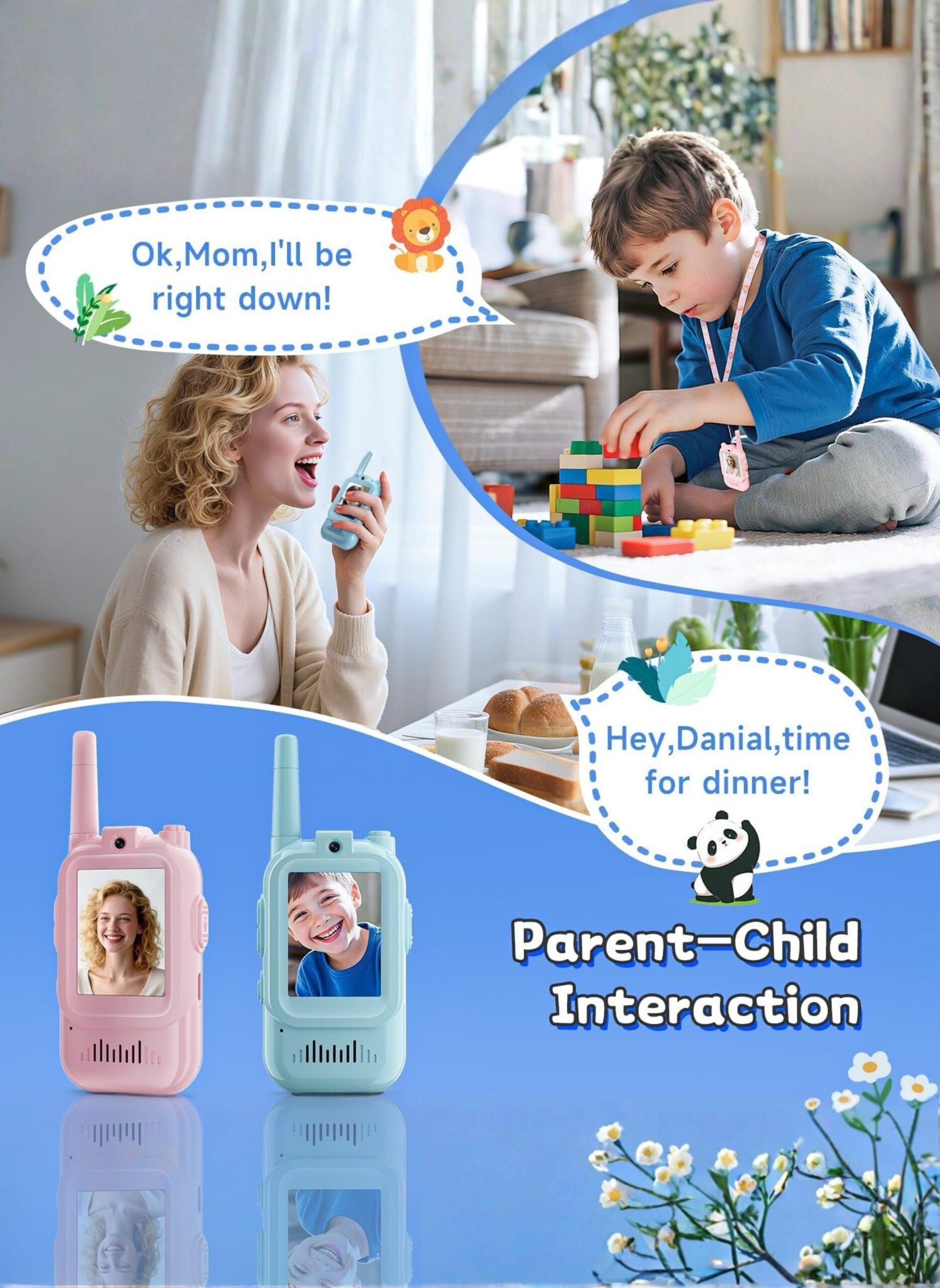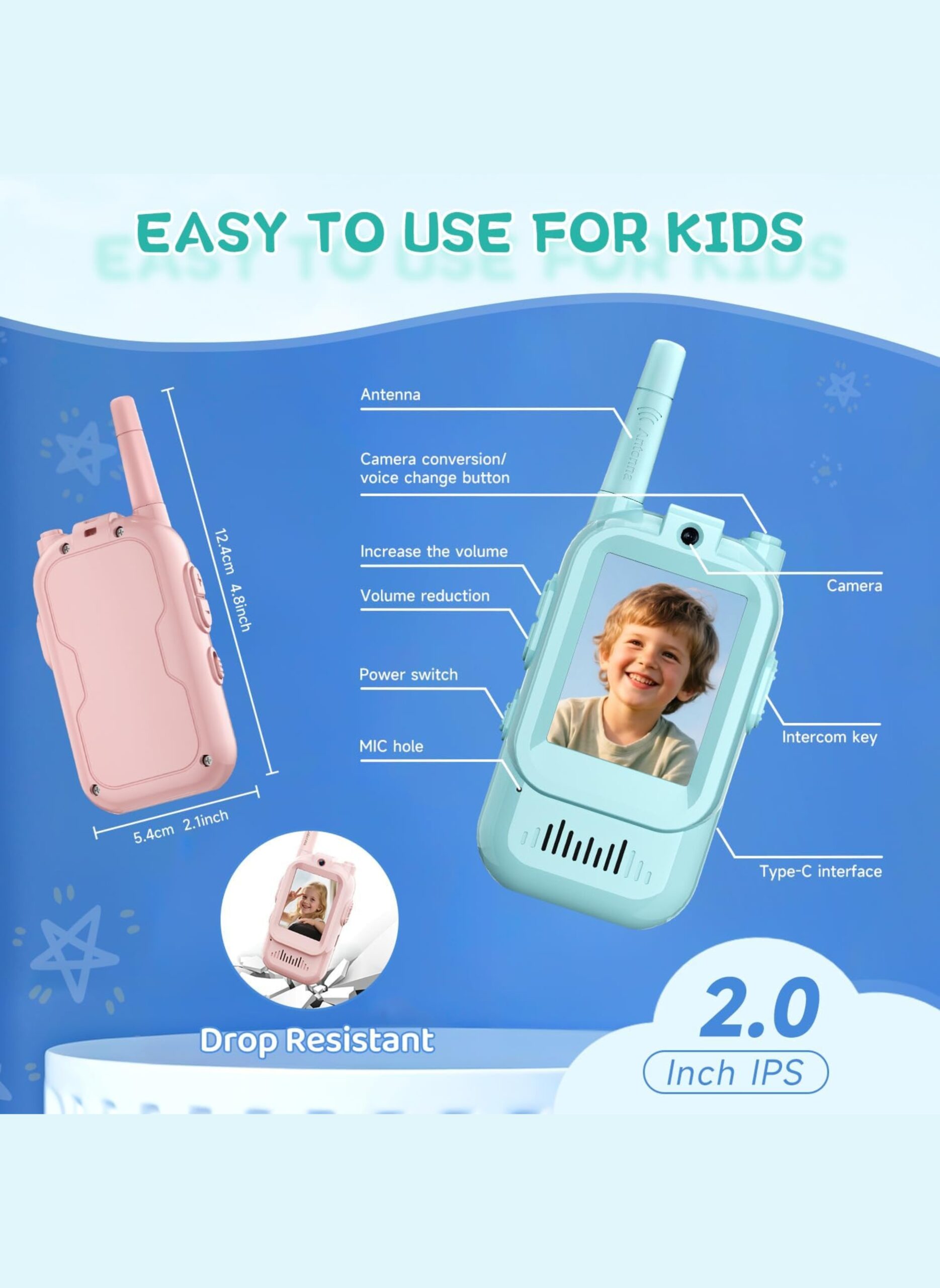 Face-to-Face Video Walky Talkiy for Kids – 2 Pack Rechargeable Video Intercom Toys Set with LCD Screen & Front Camera, Real-Time Video Chat, No SIM Needed & No WiFi Required, Long-Range 20–40MHz Kids Walkiy Talkiyes for Indoor & Outdoor Adventures, Learning Communication Toys for Boys & Girls Ages 3–12, Blue & Pink, USB-Rechargeable, Durable ABS Build, Camping Gear, Birthday & Christmas Gift Set