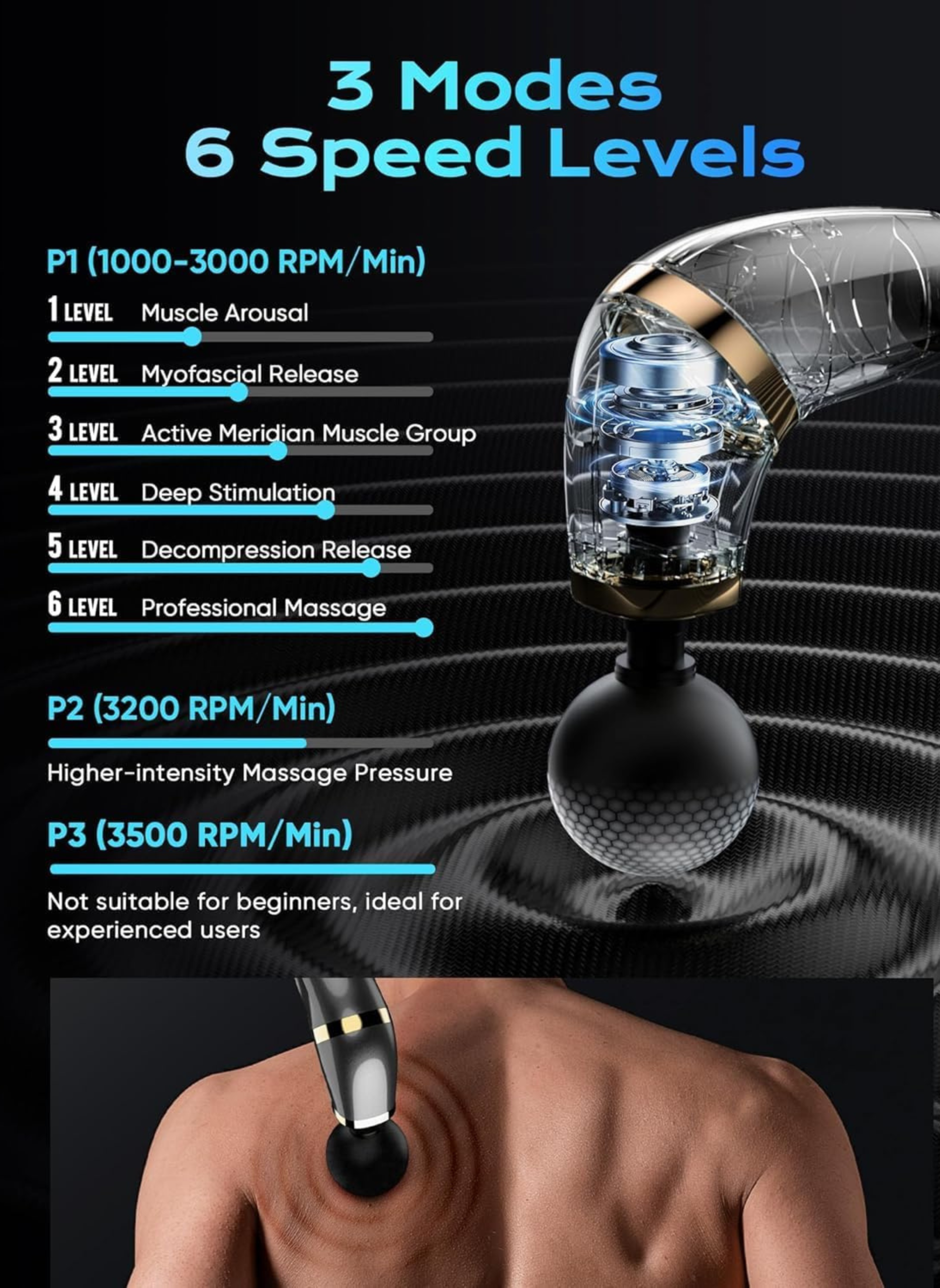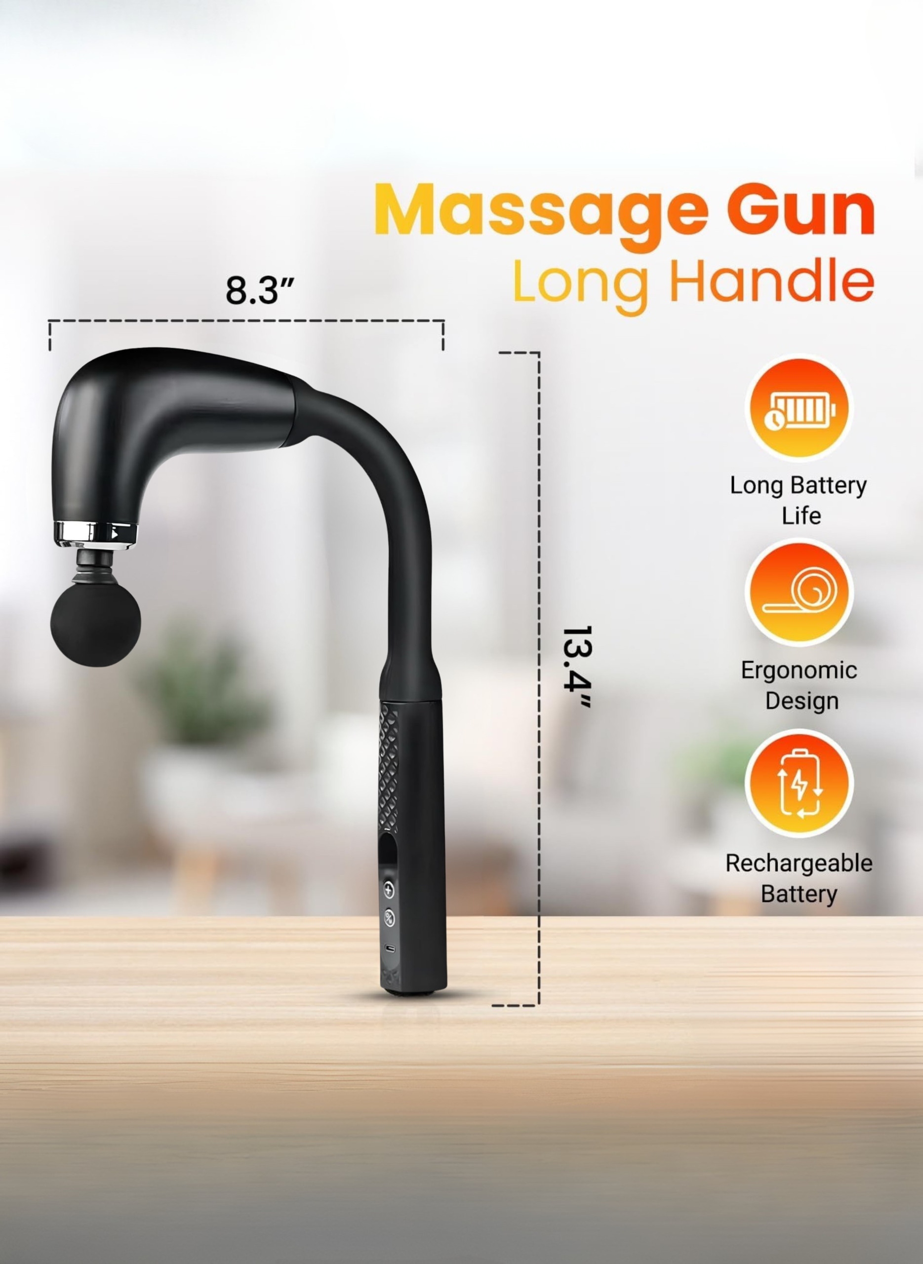 Revolutionary U-Shaped Massage Gun with Extension Handle | Deep Tissue Percussion Massager for Full Body Pain Relief | 9-Speed, 9 Modes, 4 Heads, LCD Display, Type-C Rechargeable – Ideal for Athletes, Office, Home & Travel