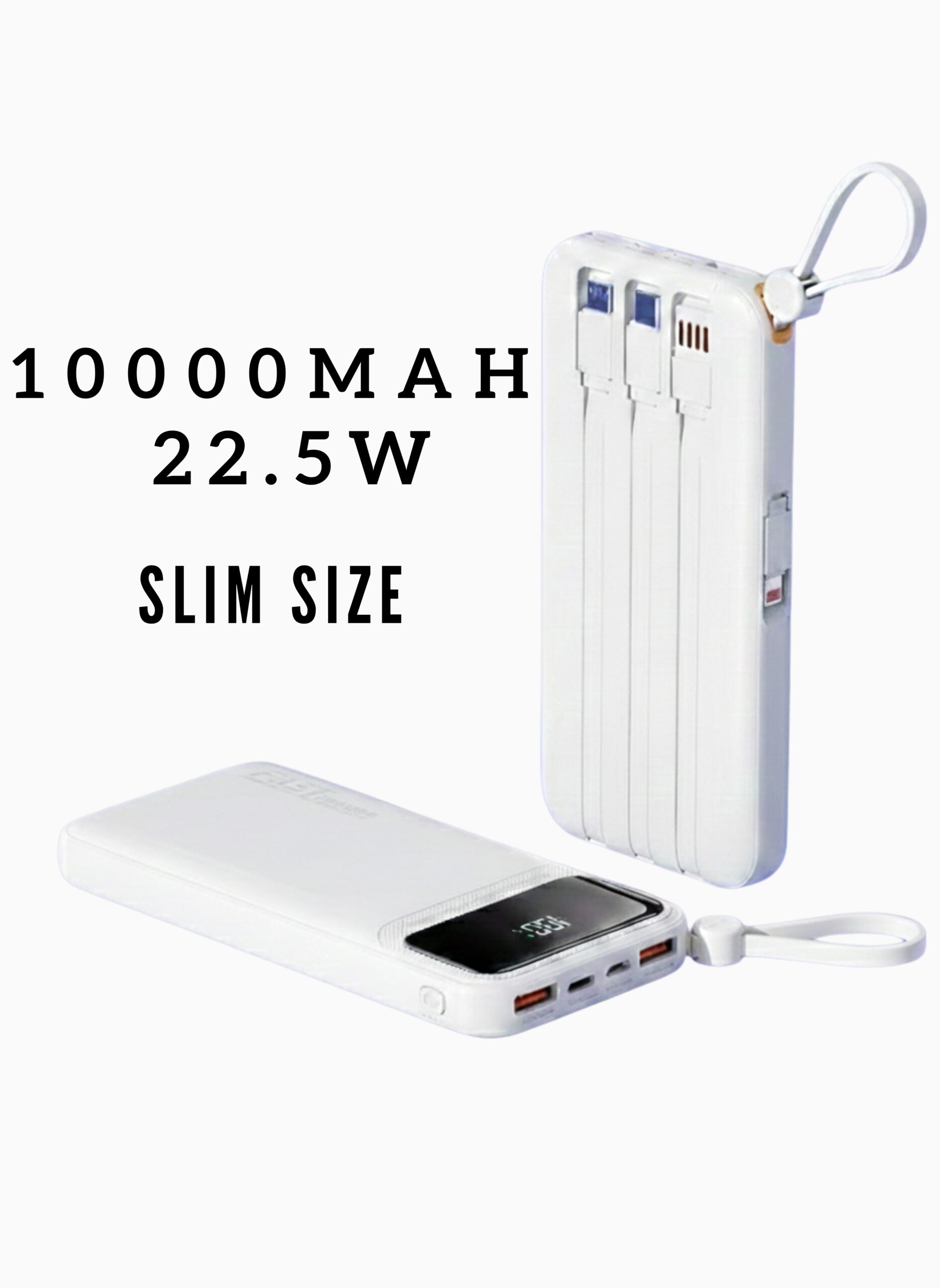 The Levino 10000mAh Slim Power Bank charges your devices fast with 22.5W wired power. It has built-in cables, 3 ports, and a pickup handle for easy use anywhere. Lightweight, flight approved, and safe, it’s perfect for travel, work, or daily use.