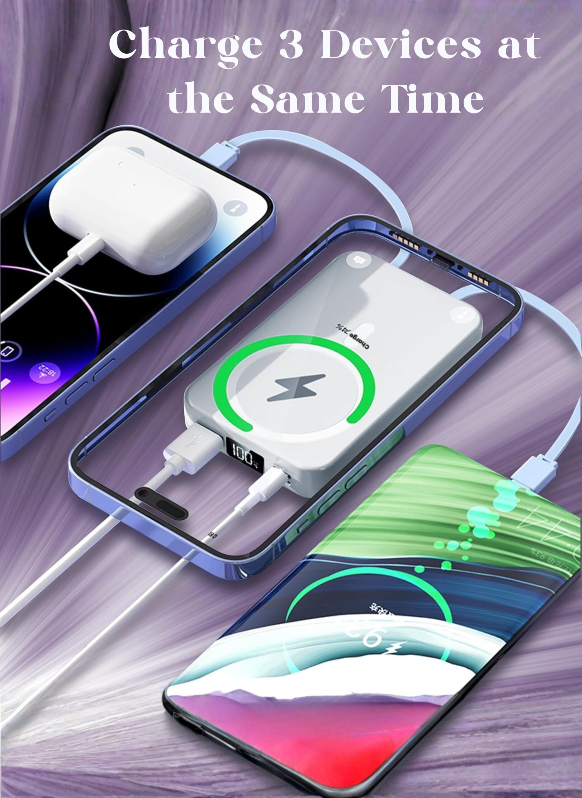 The Levino MagSafe 10000mAh Power Bank charges your devices fast with 22.5W wired and 15W wireless power. Its strong magnetic hold, built-in cables, and foldable stand make charging easy anywhere. Sleek, lightweight, and safe, it’s perfect for travel, work, or daily use.