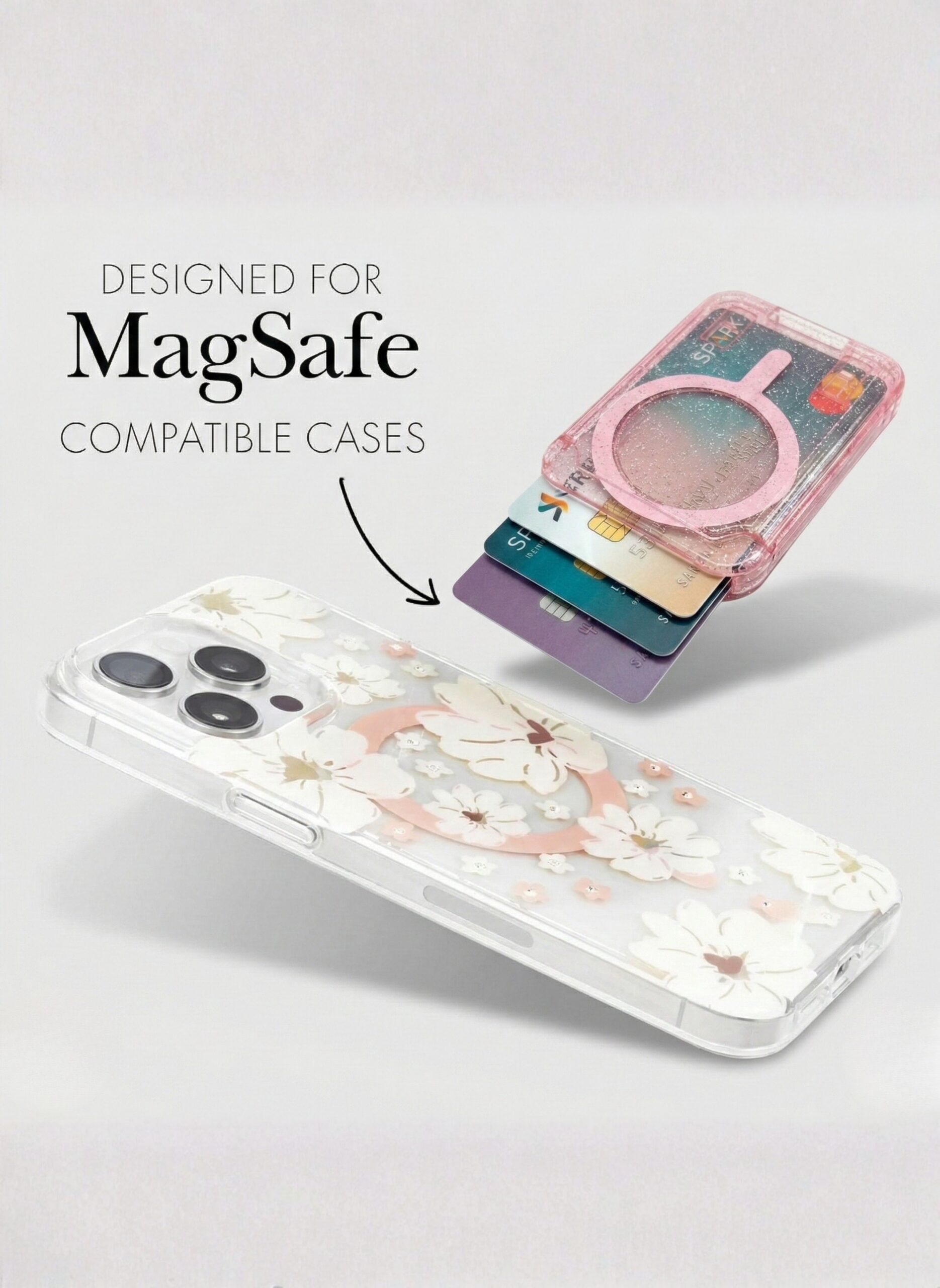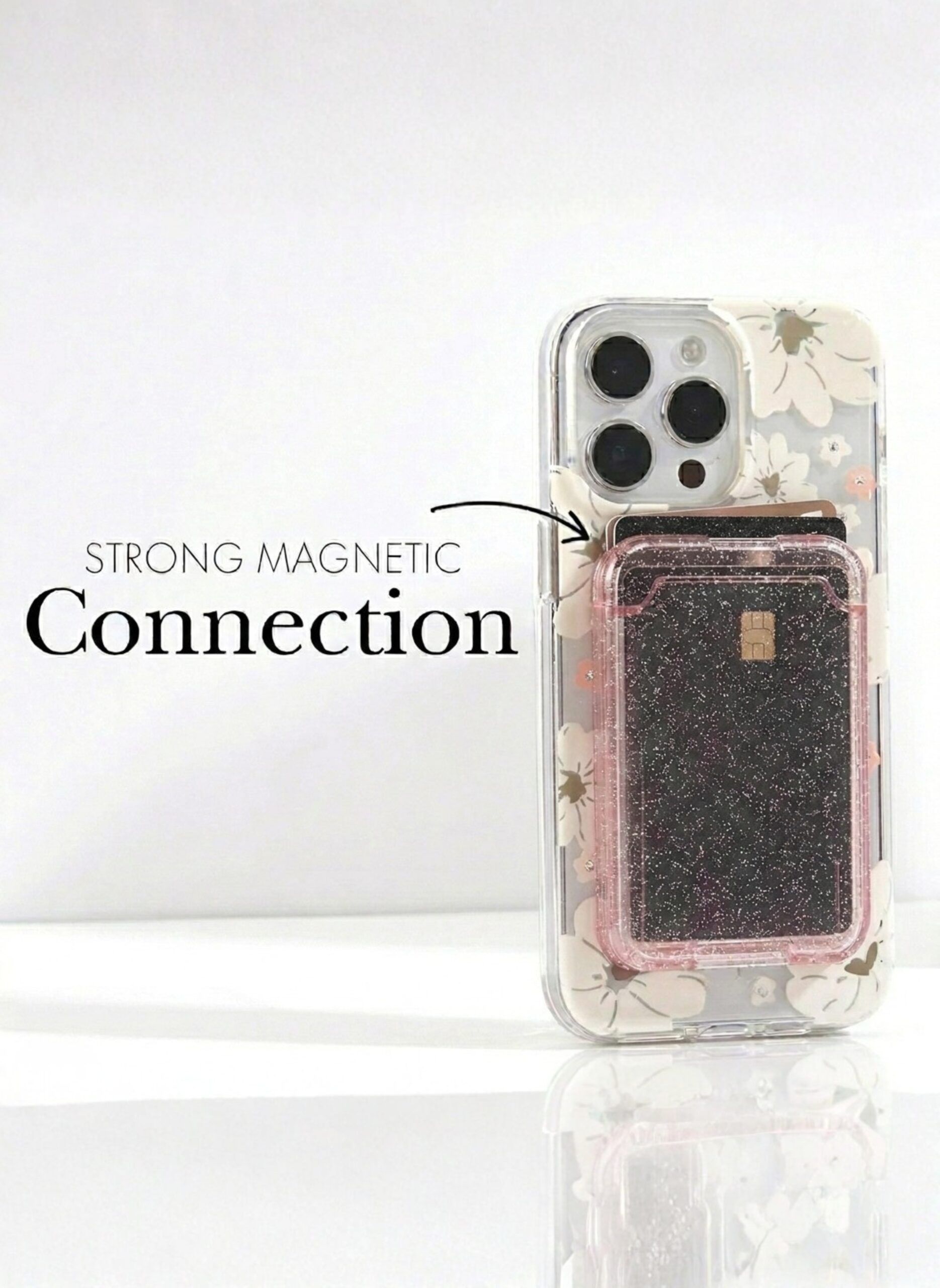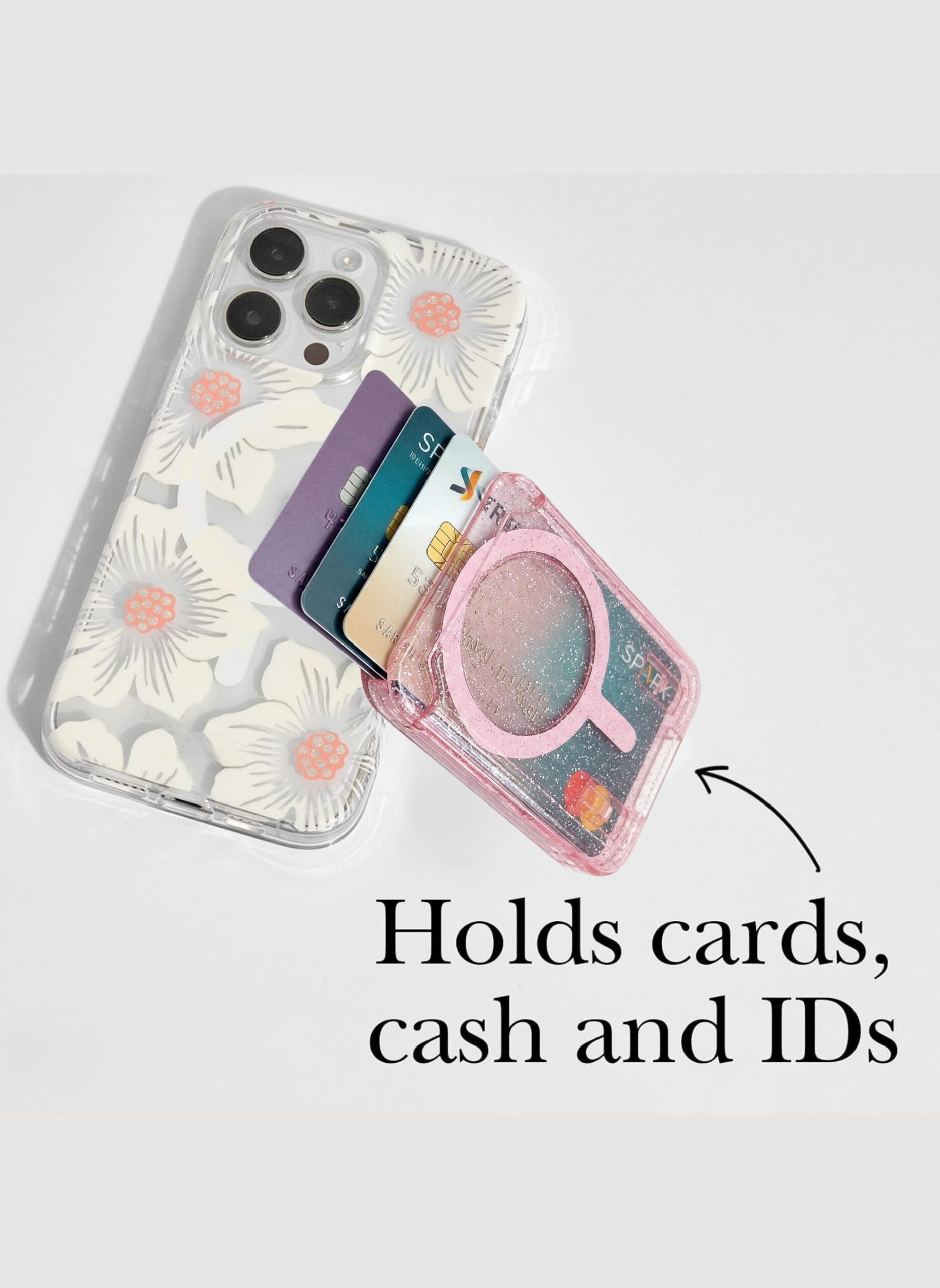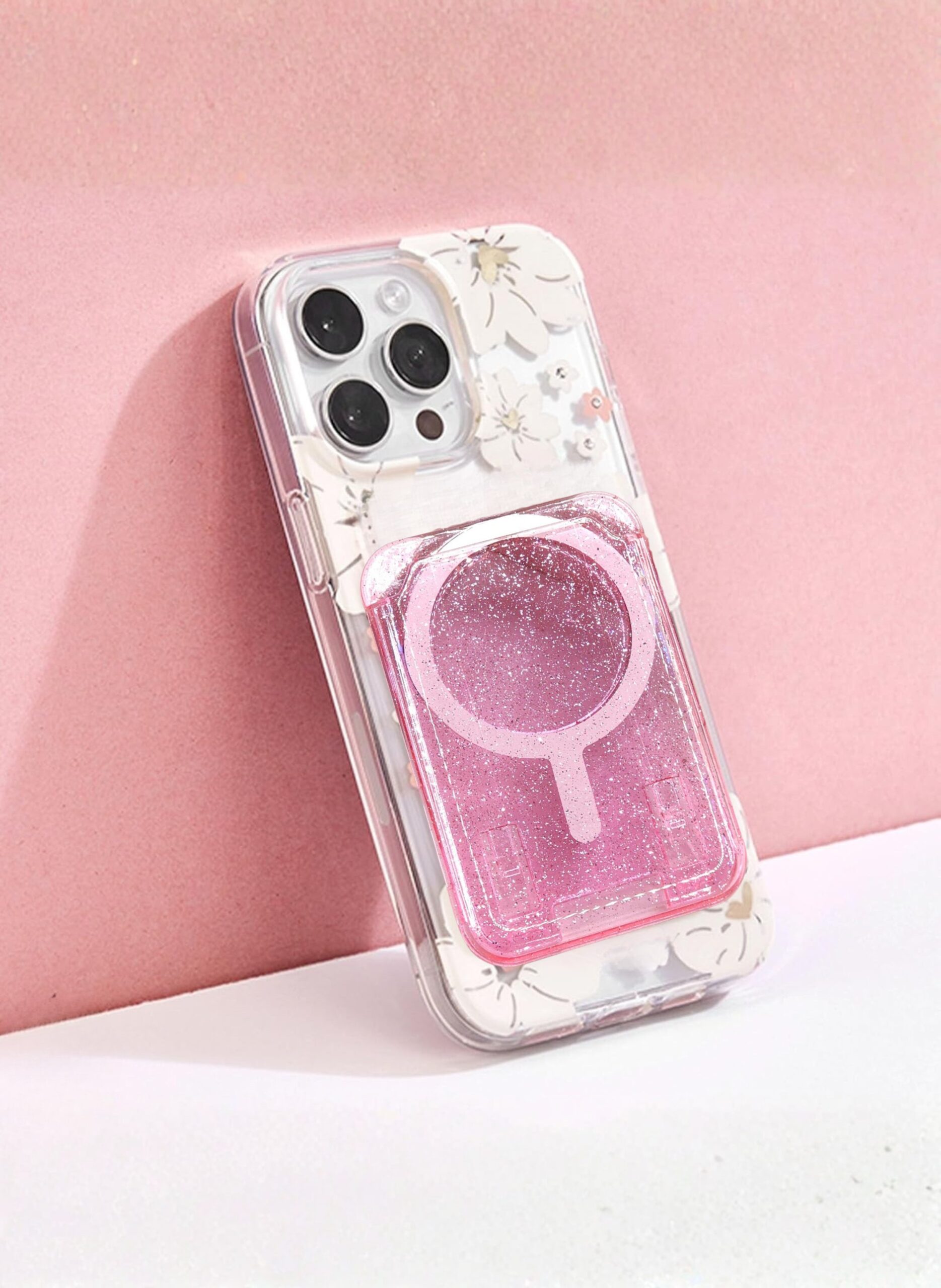 Magnetic Card Holder for Phone – Sparkle Pink Glitter MagSafe Wallet, Slim Lightweight Magnetic Phone Card Holder, Strong Hold, Luxury Shiny Mobile Wallet, Compatible with Apple iPhone MagSafe Series & Magnetic Cases, Portable Credit Card & ID Holder for Women, Girls & Daily Use