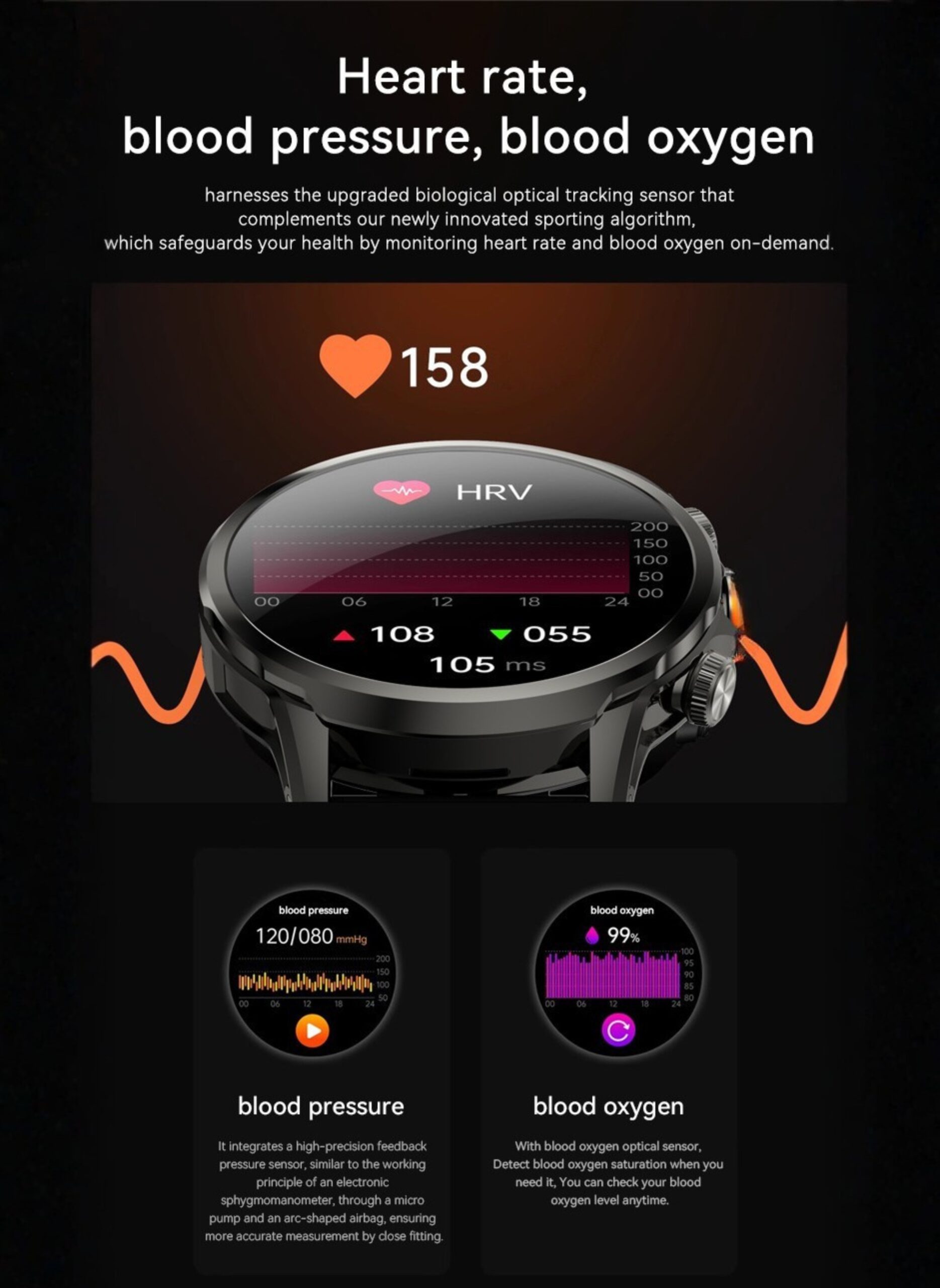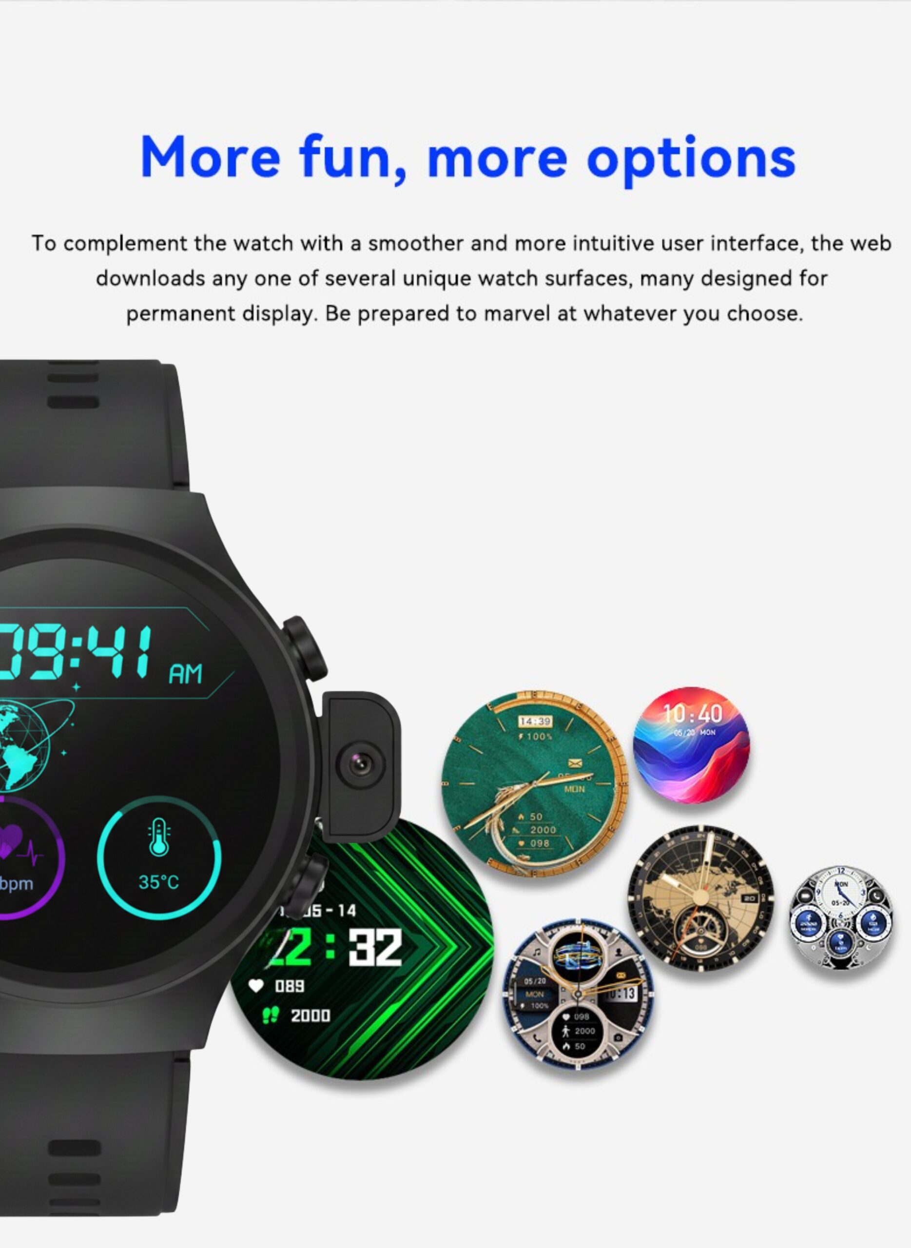 Track your heart rate, steps, sleep, and daily activities while enjoying multiple watch faces.
