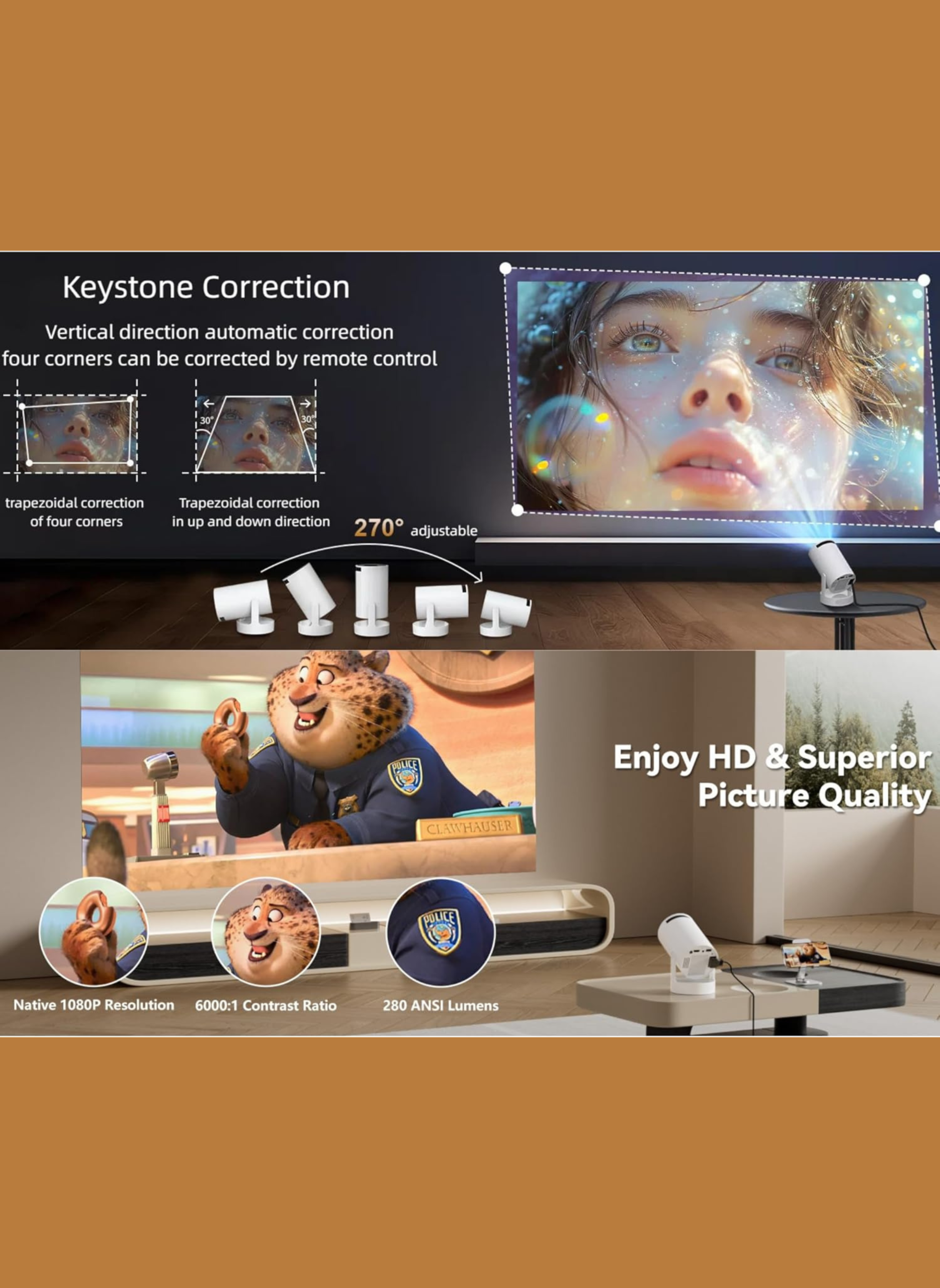 Portable Projector Pocket 5G WIFI Android11.0 Support 130 Inches Home Theater Full HD 1080P for Indoor Outdoor Home Birthday Gift Compatible with TV Stick/HDMI/USB/PS5/iOS/PS4