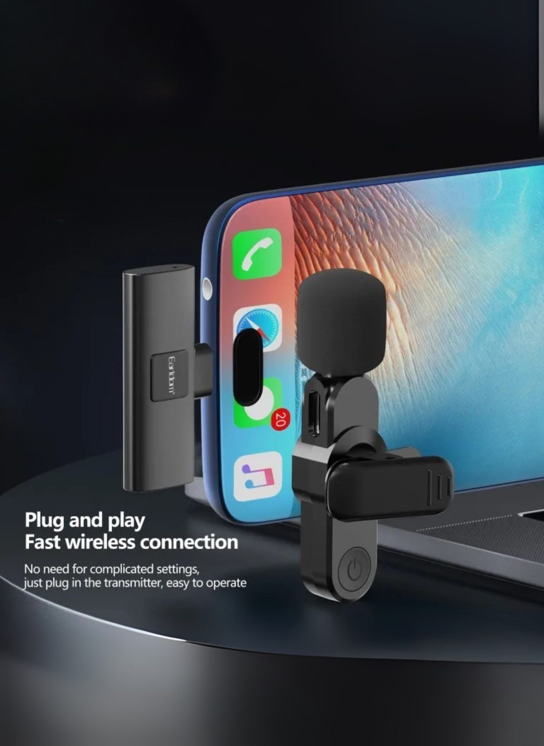 Wireless Lavalier Microphone for andriod Type C – Plug & Play Mini Mic with Charging Case & Earbud – Dual Lightning Mics for YouTube, TikTok, Live Streaming, Vlogging, Podcast, Interviews, Gaming