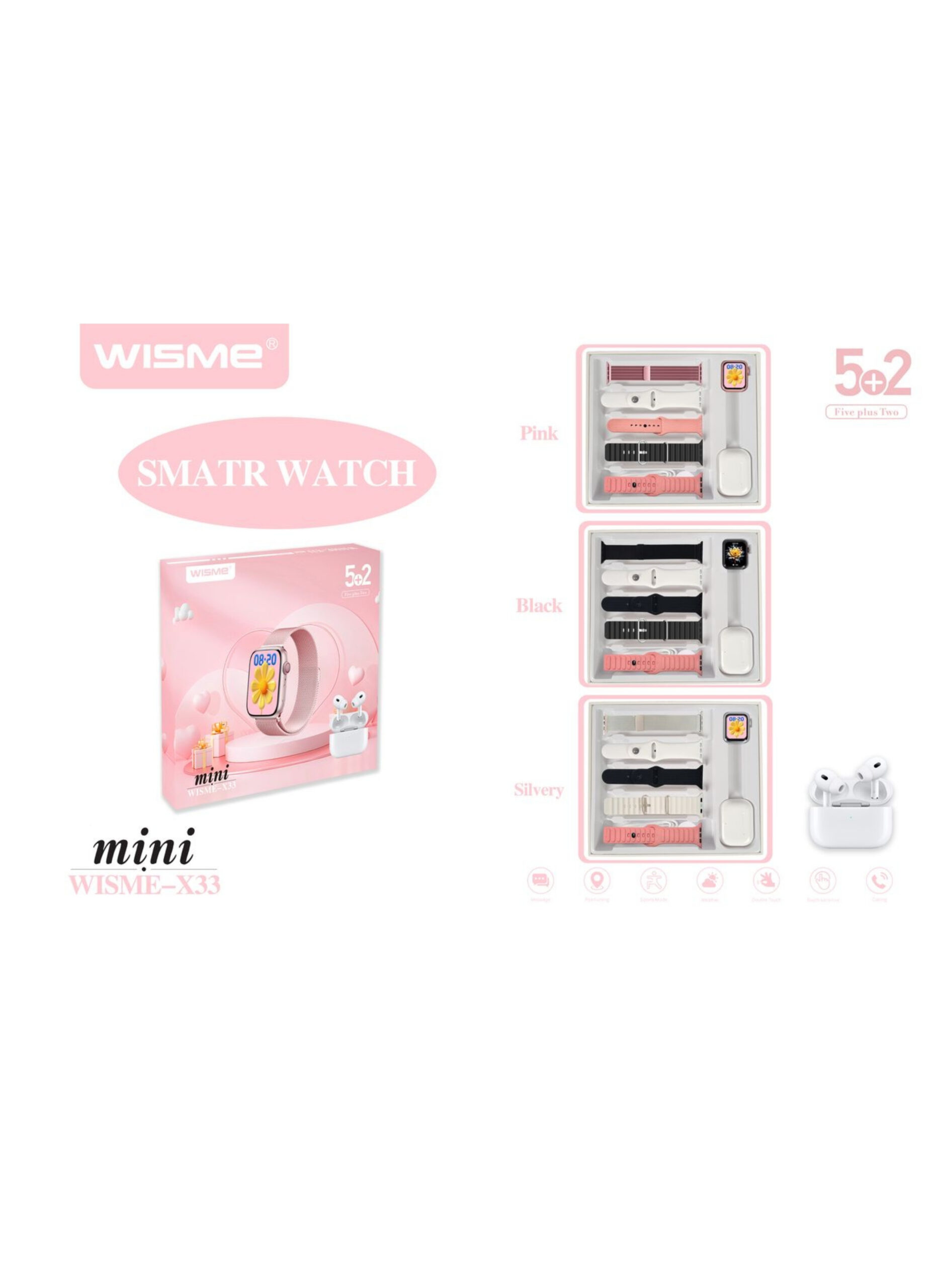 The Wisme X33 Mini Smart Watch features a vibrant HD display, advanced health tracking, smart notifications, and built-in wireless earbuds. Lightweight, water-resistant, and compatible with Android and iOS, it’s ideal for fitness, work, and everyday wear.